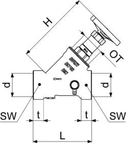 Schlösser Schrägsitzventil 0014102500001 DN 25, Rp 1, Mit Entleerung, Steigende Spindel