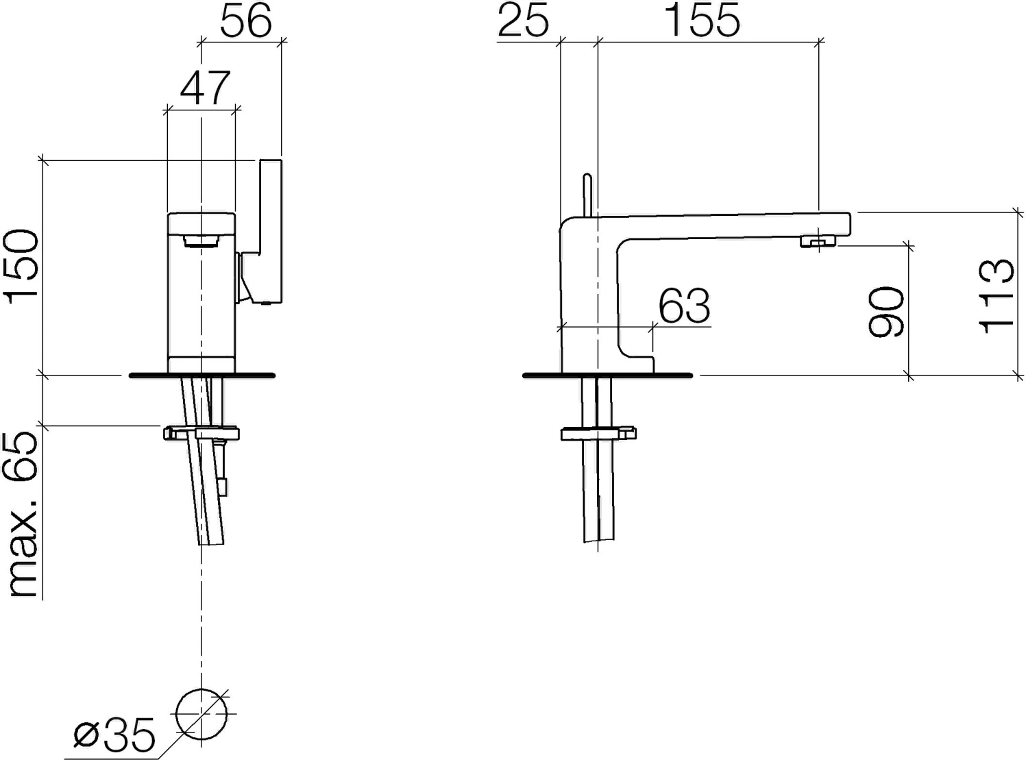 - Armaturenhöhe 113 mm