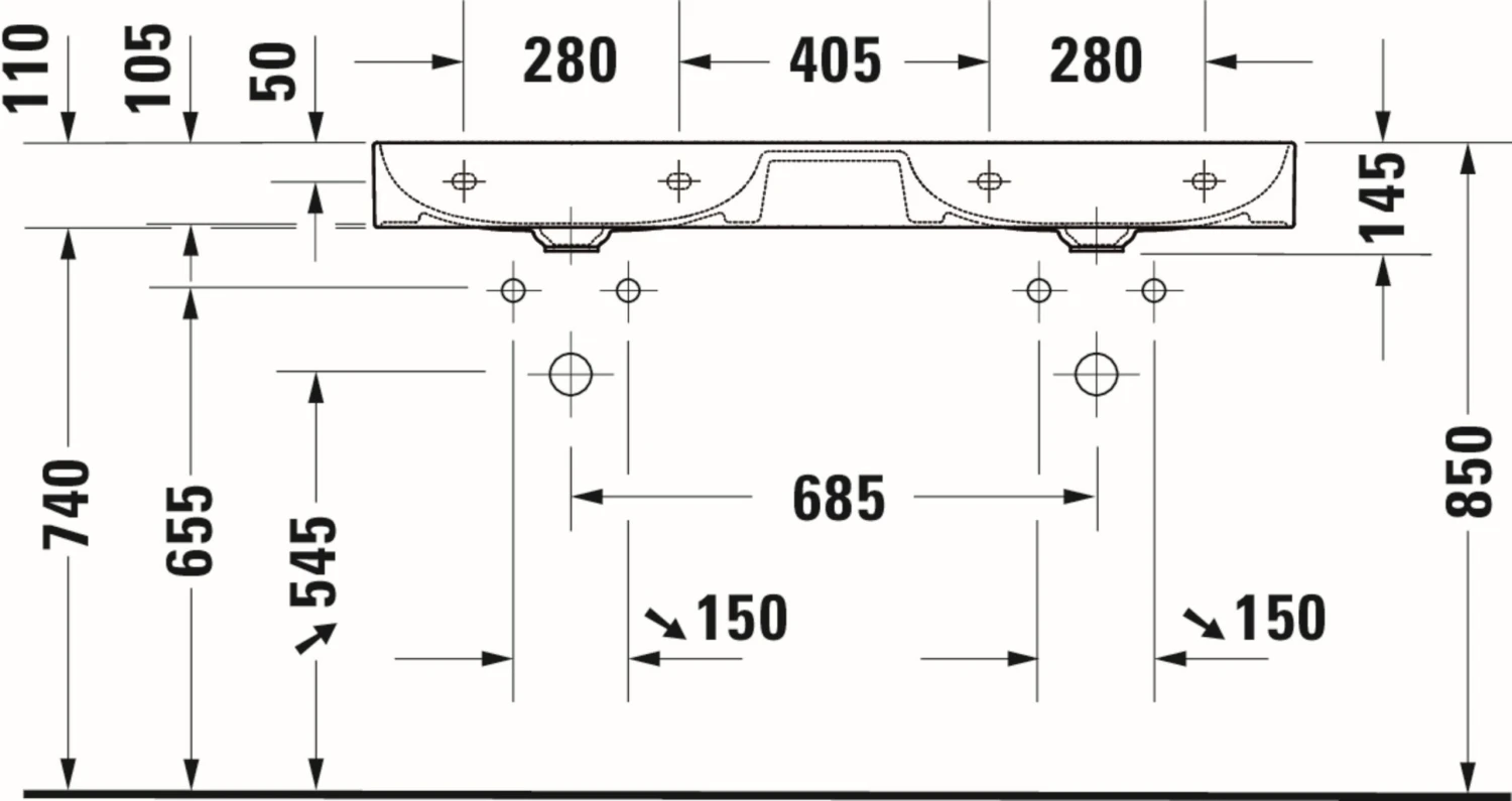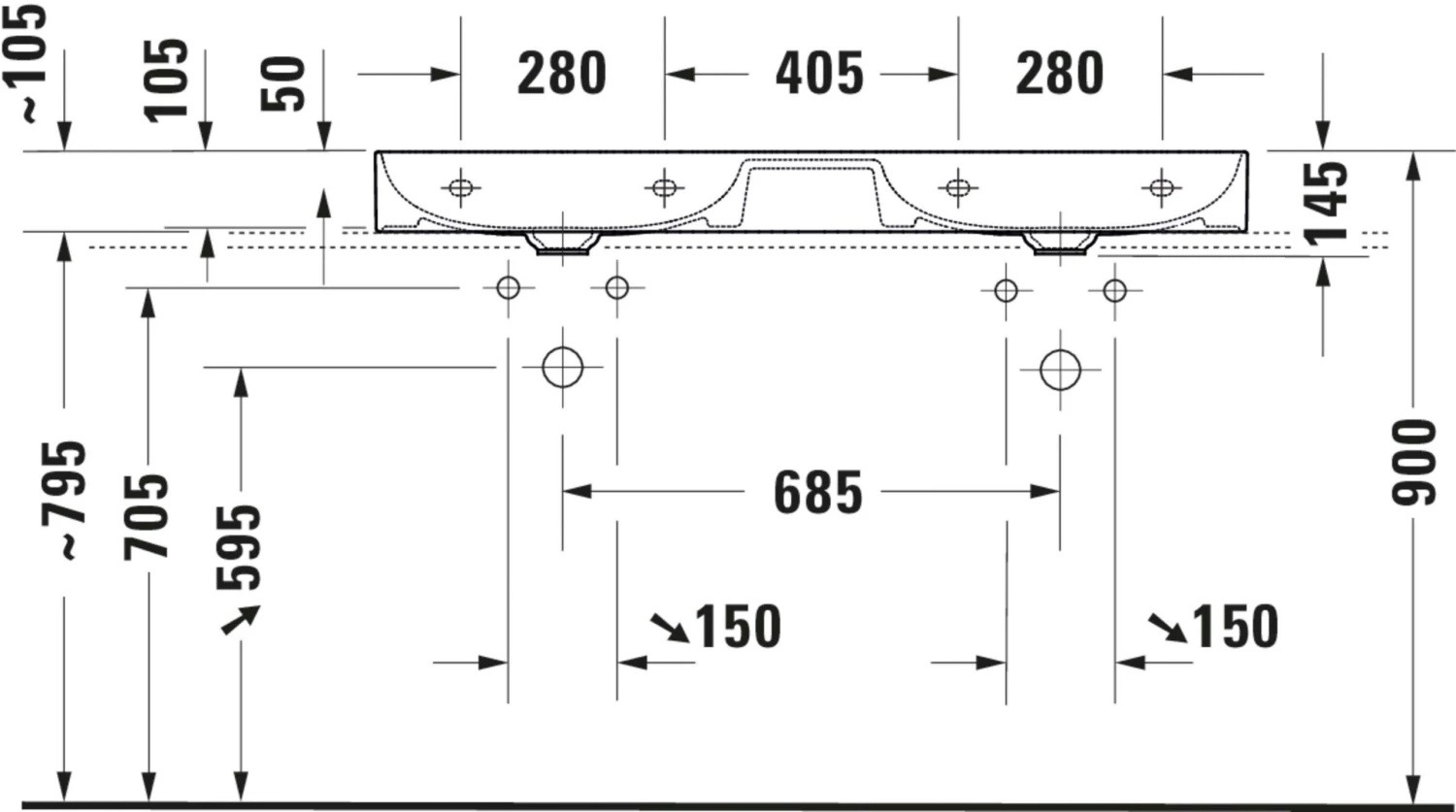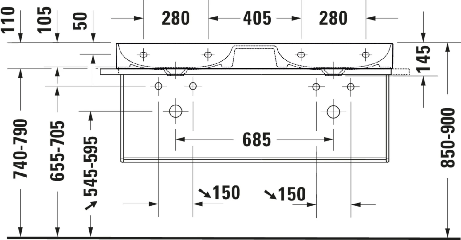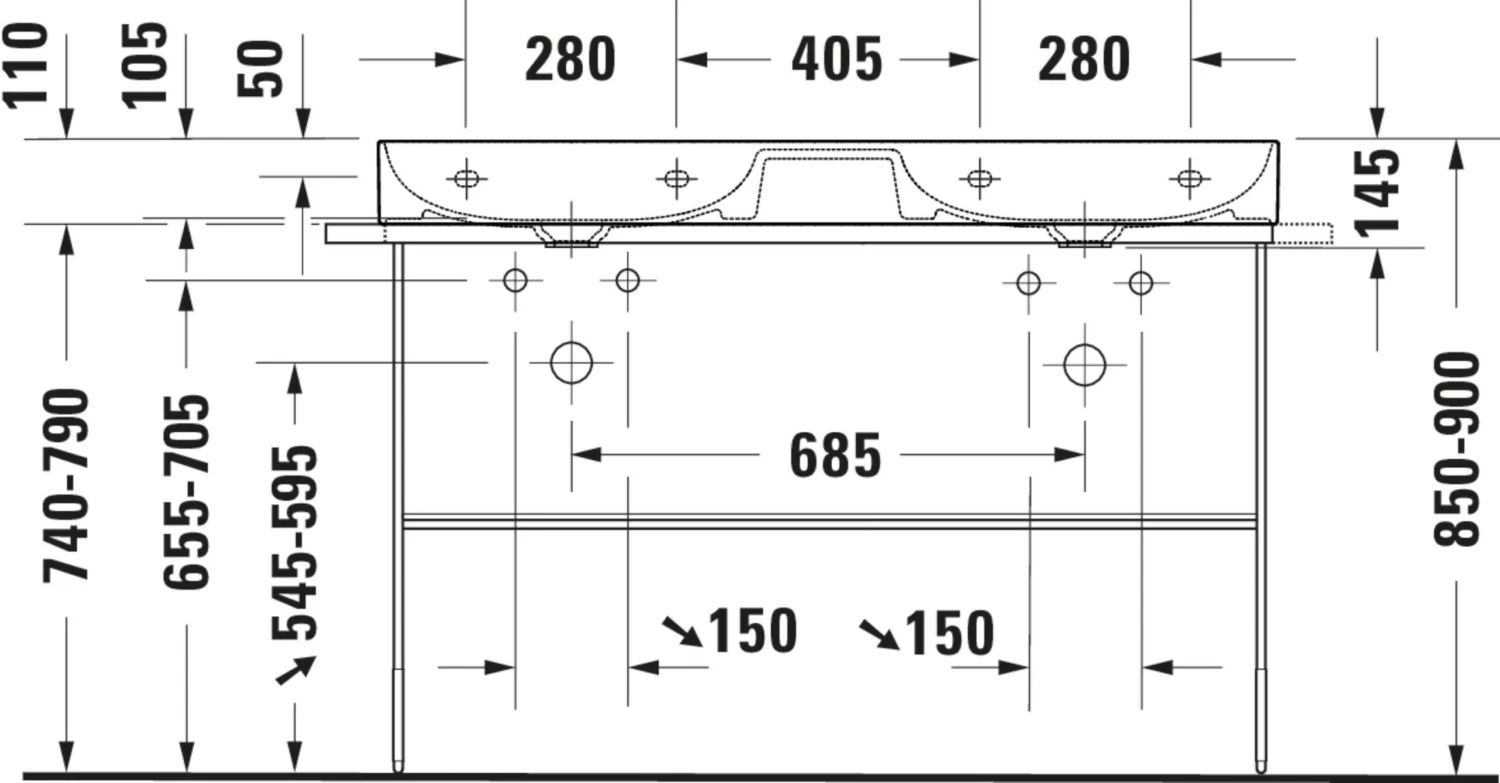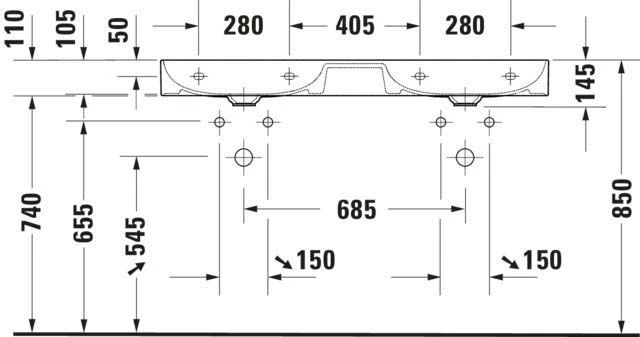 Duravit DuraSquare Möbel-Doppel-Waschtisch geschliffen 23531200141