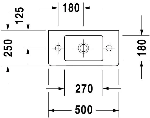 Duravit Handwaschbecken Vero 500 mm mit ÜL, mit HLB, HL links, weiss Duravit Vero Handwaschbecken aus Sanitärkeramik 500x250x130mm mit Überlauf, mit seitlichen Ablageflächen