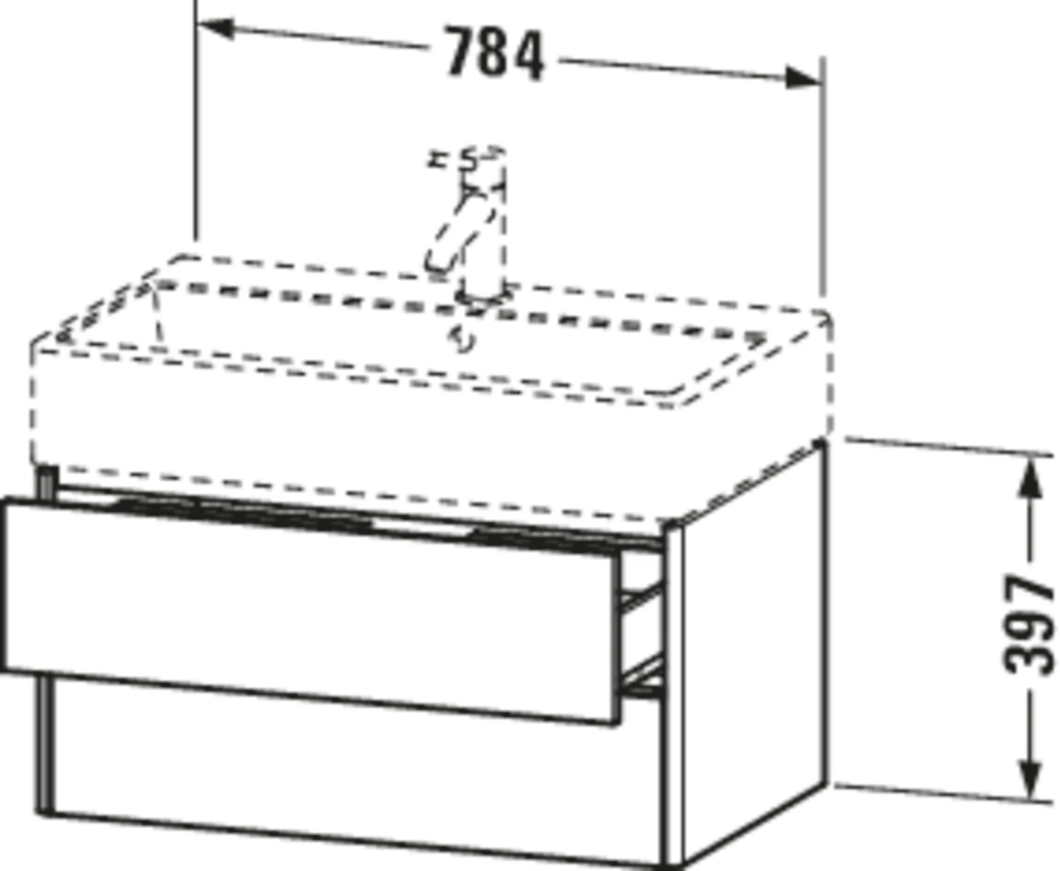 - oberer Schubkasten mit Siphonausschnitt und Schürze
