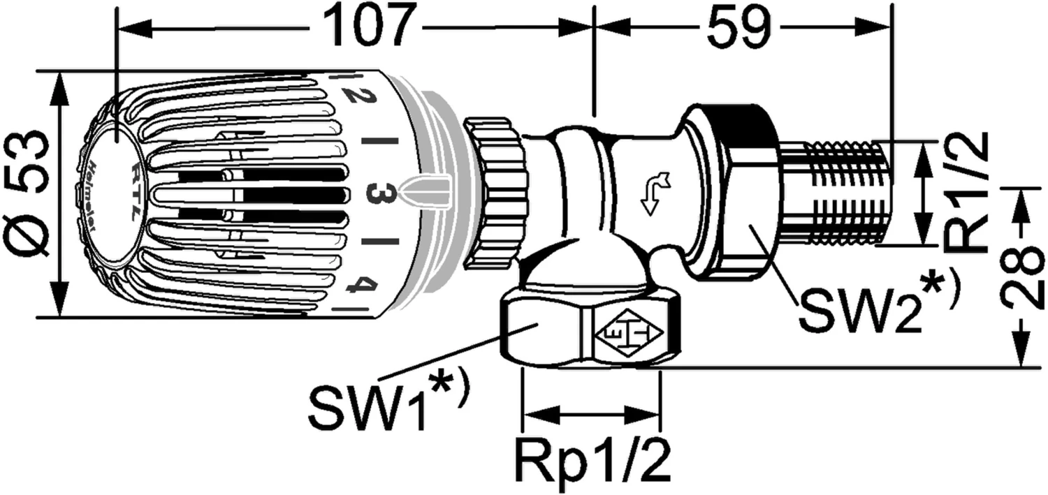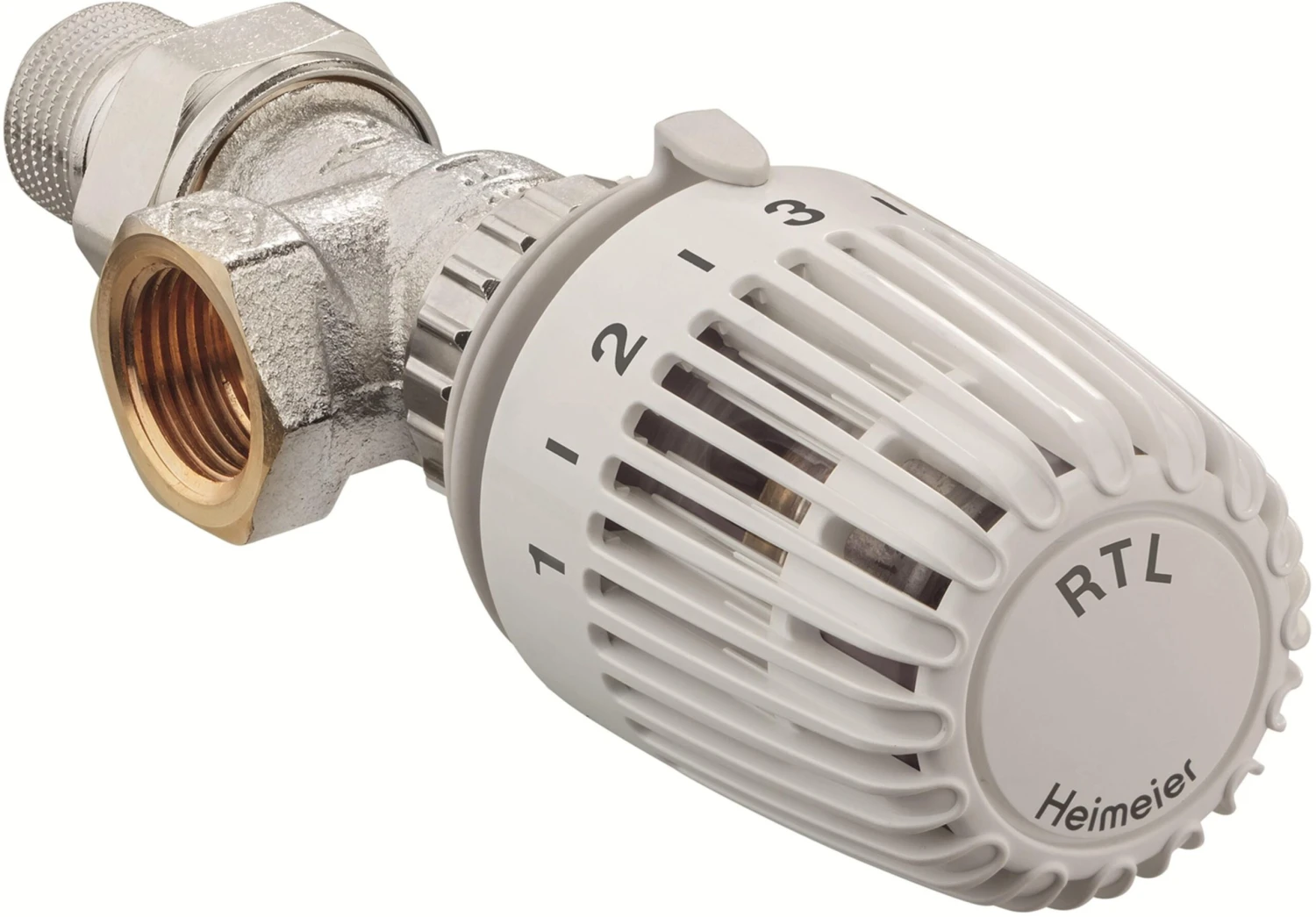 Heimeier Rücklauftemperaturbegrenzer RTL Eckform, Außengewinde R 1/2 HEIMEIER Rücklauftemperaturbegrenzer Ventilunterteil: Ventilgehäuse aus korrosionsbeständigem entzinkungsfreiem Rotguß, vernickelt. Mit Niro-Stahlspindel und doppelter O-Ring-Abdichtung. Äußerer O-Ring ohne Entleeren der Anlage auswechselbar. Zul. Betriebstemperatur TB 120 Grd. C. Zul. Betriebsüberdruck PB 10 bar. Fühlerelement Skalenhaube weiß RAL 9016. Dehnstoff- gefüllter Thermostat. Verdeckte obere und untere Begrenzung des Temperatur- bereiches oder Blockierung einer Einstellung durch Anschlagclips. Überhubsicherung. Sollwertbereich 0 bis 50 Grd. C. Merkzahl 0-5. Fabrikat: Heimeier Typ: RTL Anschluß: Außengewinde R 1/2 Ausführung: Eckform Art.-Nr. 9173-02.800