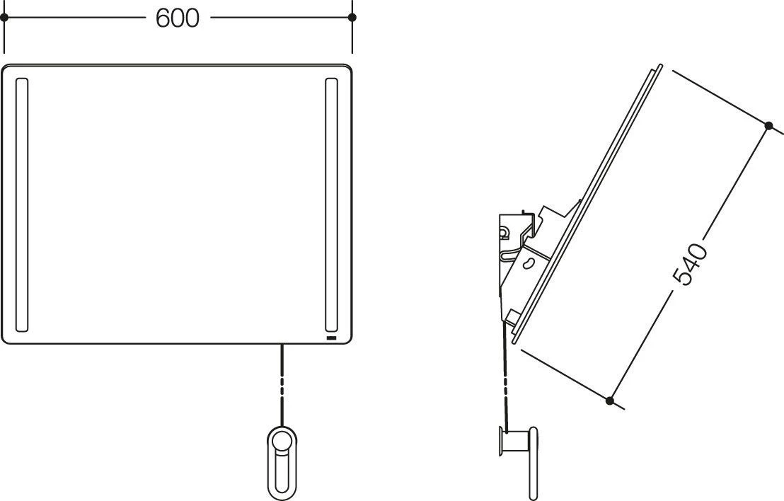 - der Spiegel kann mit Kurbel und Seilzug um max. 28° geneigt werden und ist daher im Stehen und im Sitzen zu benutzen
