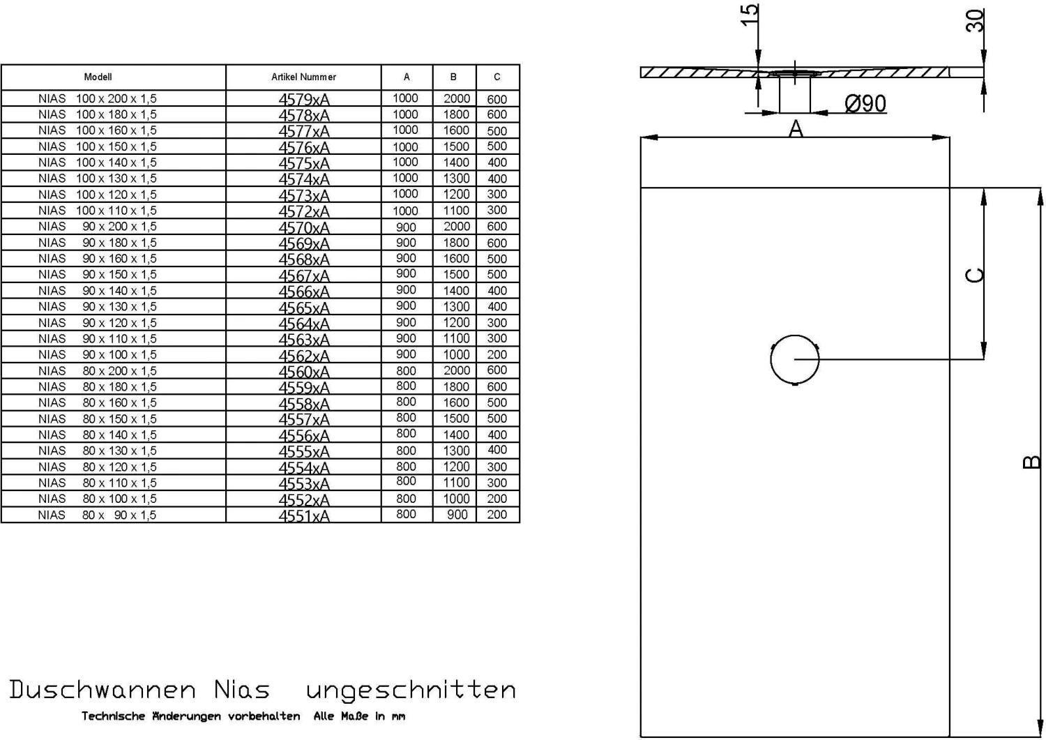 - Ablauf Ø 90 mm