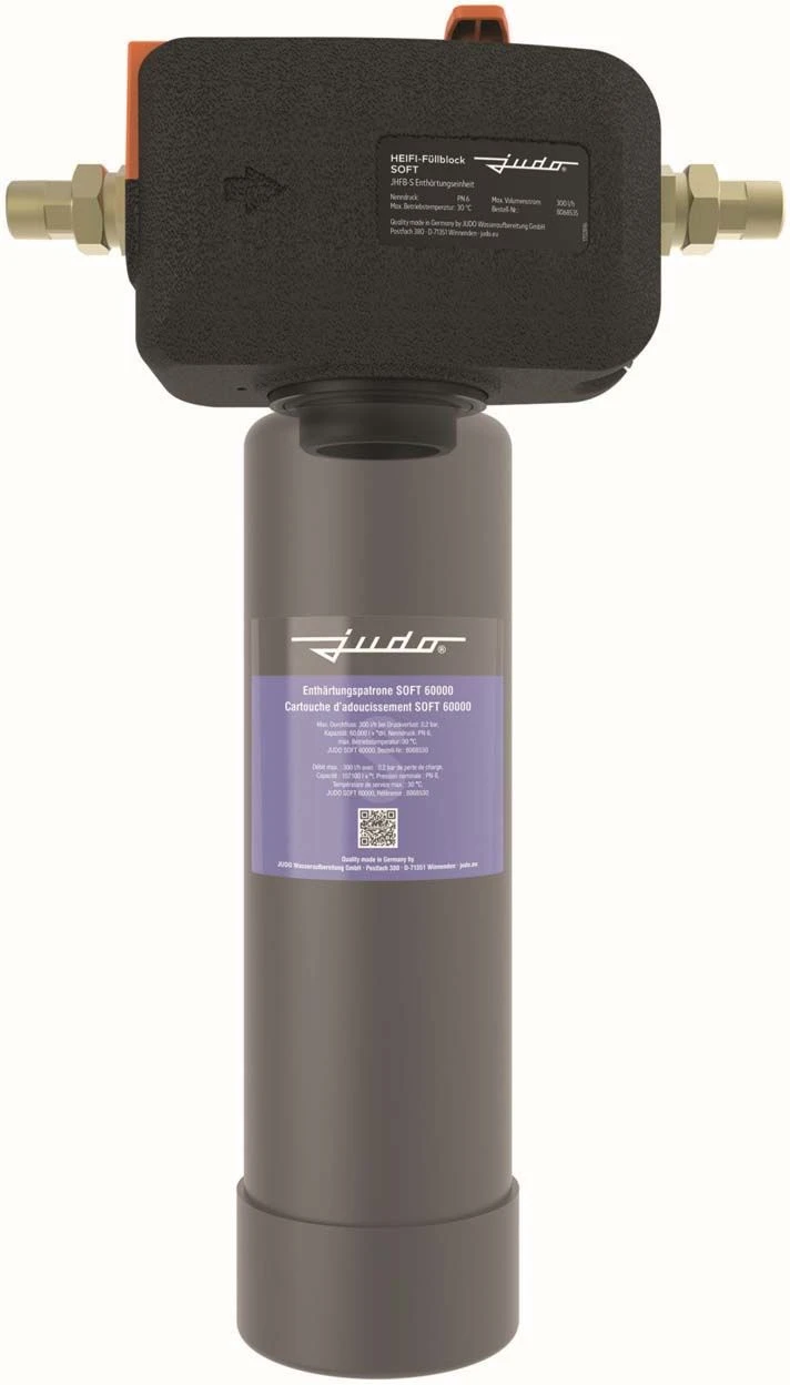 - Behälteranbindung unten mit Außengewinde zum Anschluss von JUDO SOFT Enthärtungspatronen oder JUDO Adapter für bodenstehende JUDO SOFT Enthärtungspatronen mit hoher Kapazität
