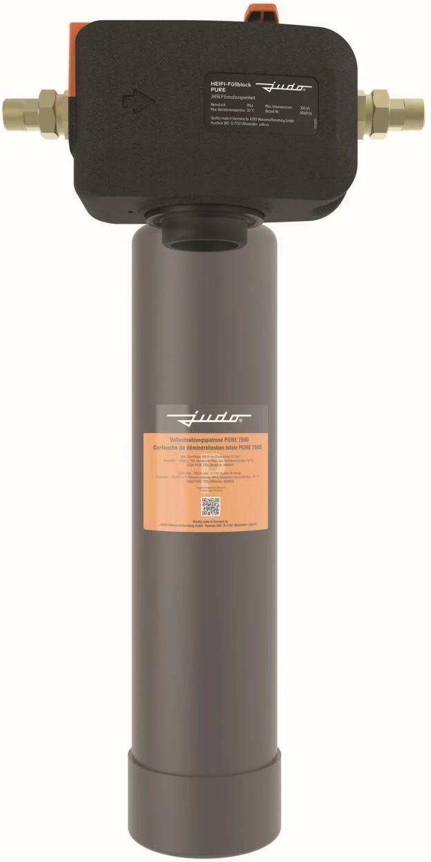 - Behälteranbindung unten mit Außengewinde zum Anschluss von JUDO PURE Vollentsalzungspatronen oder JUDO Adapter für bodenstehende JUDO PURE Vollentsalzungspatronen mit hoher Kapazität