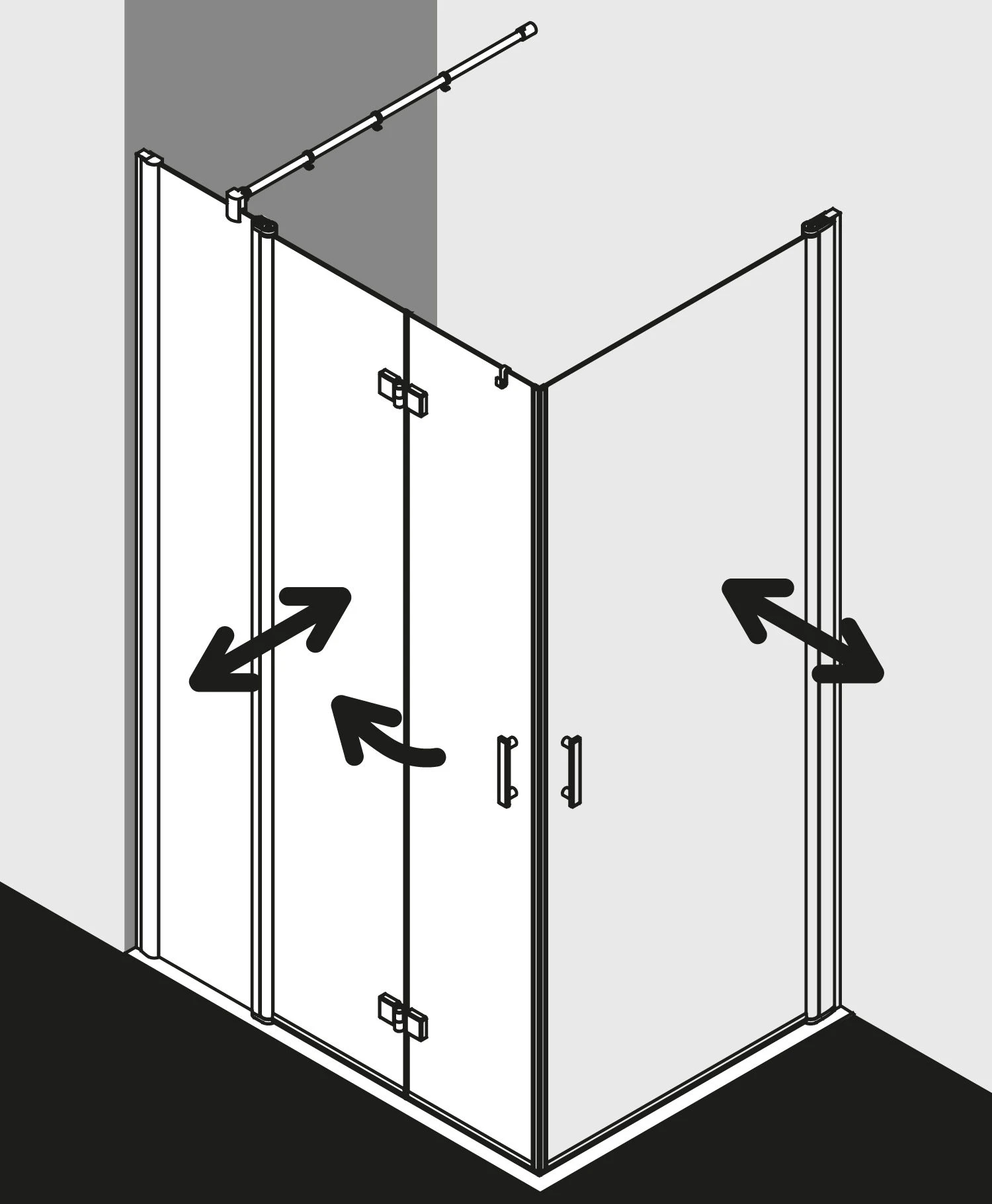 Kermi Diga Eckeinstieg-Hälfte Pendel-Falttür m Festfeld DIF2R100182PK
