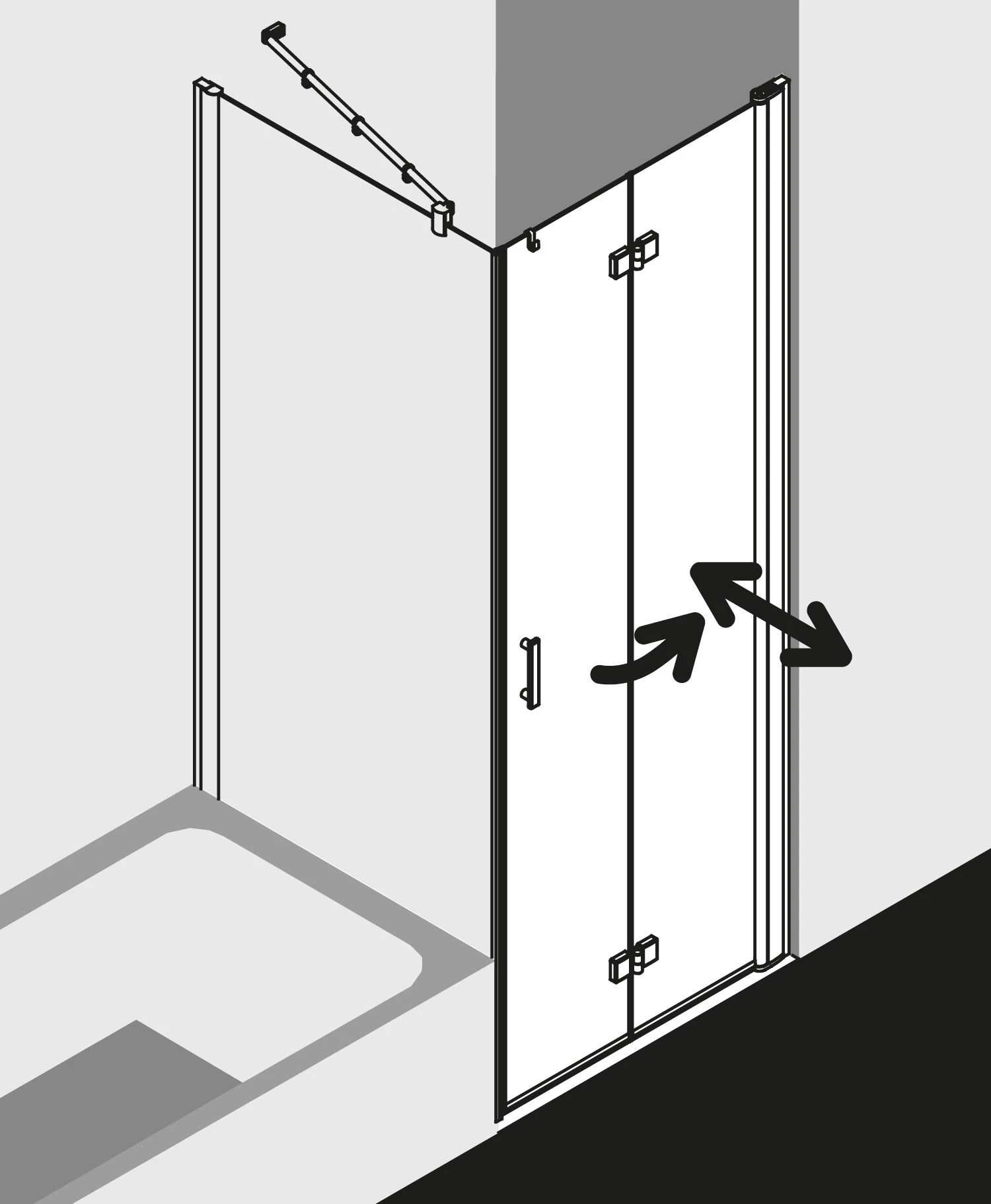 - mit zwei Glasflügeln – im Wandgelenkprofil 90° nach innen und außen schwenkbar