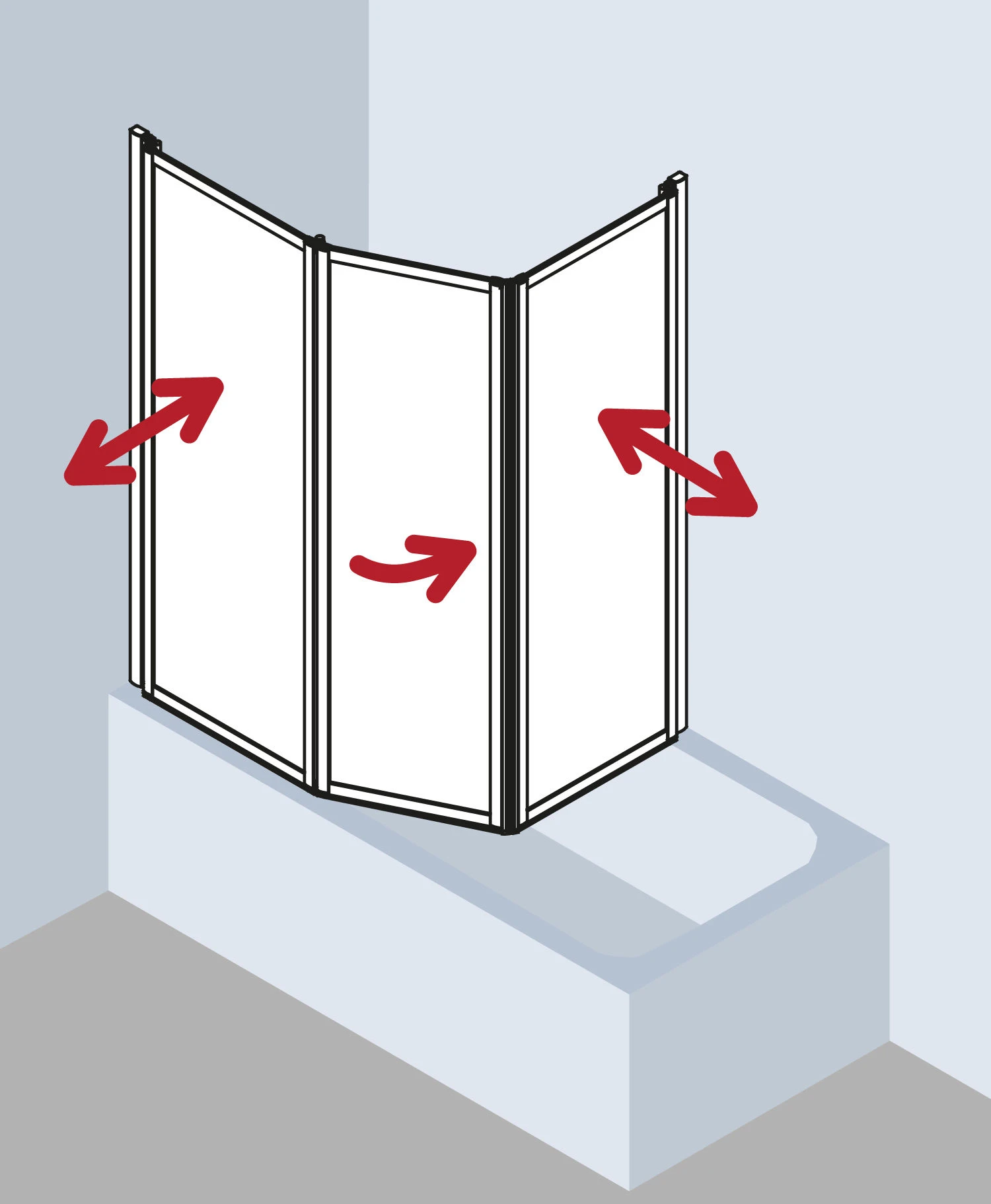 - bestehend aus Faltwand 2-flügelig auf Badewanne und Faltwand 1-flügelig über Badewanne mit Magnetverschluss