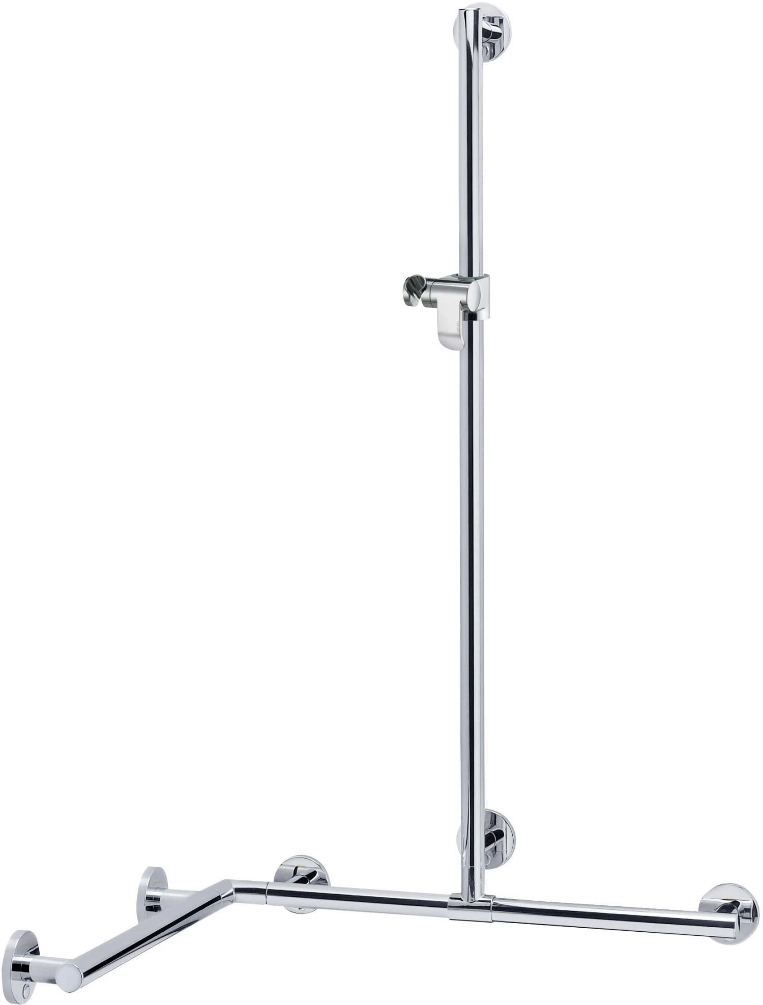 Keuco Plan Care Duschhandlauf, Winkel/T-Form und Brausestange 34915019111, Messingrohr hochglanzverchromt, komplett mit Brausehalter in ästhetischem, funktionalem und ergonomischem Design die Brausestange ist vor der Montage frei positionierbar Ausführung rechts und links verwendbar, speziell für den Dusch- und Wannenbereich als Hilfe zum Festhalten und Abstützen bis 130 kg belastbar, antistatisch, leicht zu reinigen Achsmaß waagerecht 900 / 1100 mm, senkrecht 1100 mm Rohrdurchmesser 33 mm, 6 Rosetten Durchmesser 82 mm Aussenmasse 1097 mm, 1297 mm, 1263 mm Ausladung 90 mm, Wandabstand 57 mm Die Befestigung erfolgt verdeckt Im Lieferumfang enthalten: 6x Befestigungs-Set 1 Art.-Nr. 34990000100 (je 1 x pro Wandbefestigung) Der Griff ist TÜV-GS geprüft Der Griff ist kombinierbar mit dem Duschspritzschutz 34940 und dem Klappsitz mit Rückenlehne 34981 Weitere Befestigungs-Sets (je nach Ankergrund/Mauerwerk): 6 x Befestigungs-Set 4 (Art.-Nr. 34990000200) oder 6 x Befestigungs-Set 7 (Art.-Nr. 34993000200)
