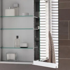 - vertikale Beleuchtung an beiden Seiten, Türen drehen sich um die Beleuchtung