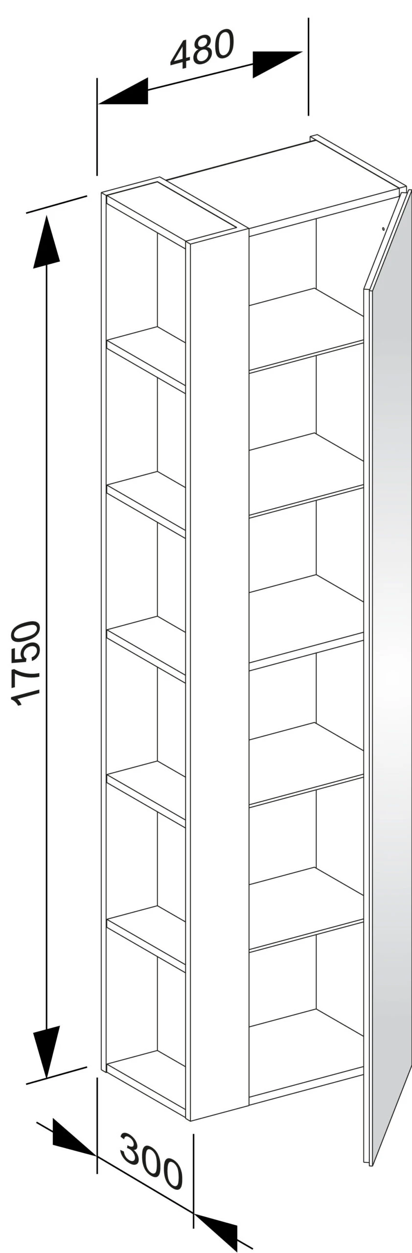 - Seitenregal mit 5 festen Einlegeböden