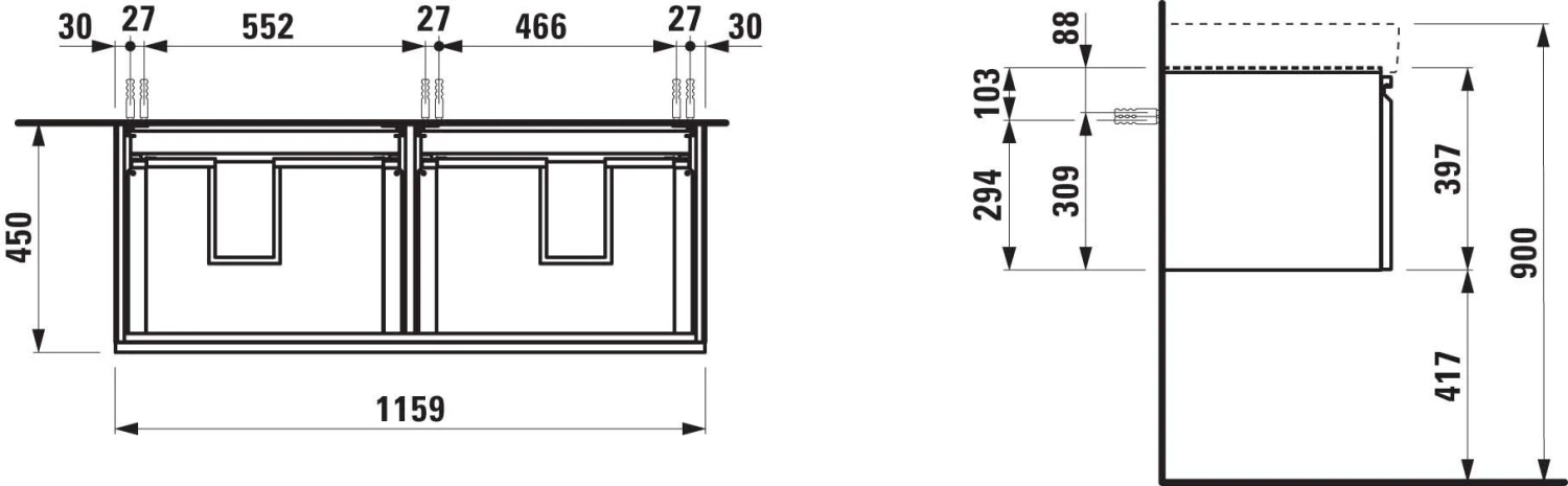 Schreibe die erste Rezension für „LAUFEN Pro S Waschtisch-Unterbau H4835630964631 116x45x39,5cm, 2 Schubladen, Weiß Matt“ Antwort abbrechen