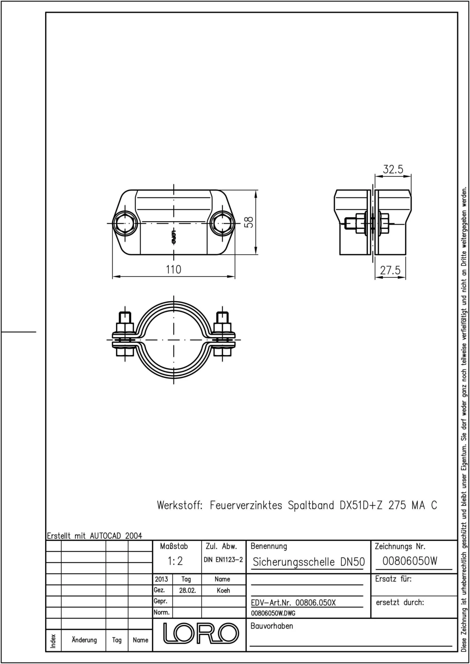 Schreibe die erste Rezension für „Loro Loro-x Sicherungsschelle 00806.050X DN 50, Stahl, Feuerverzinkt“ Antwort abbrechen