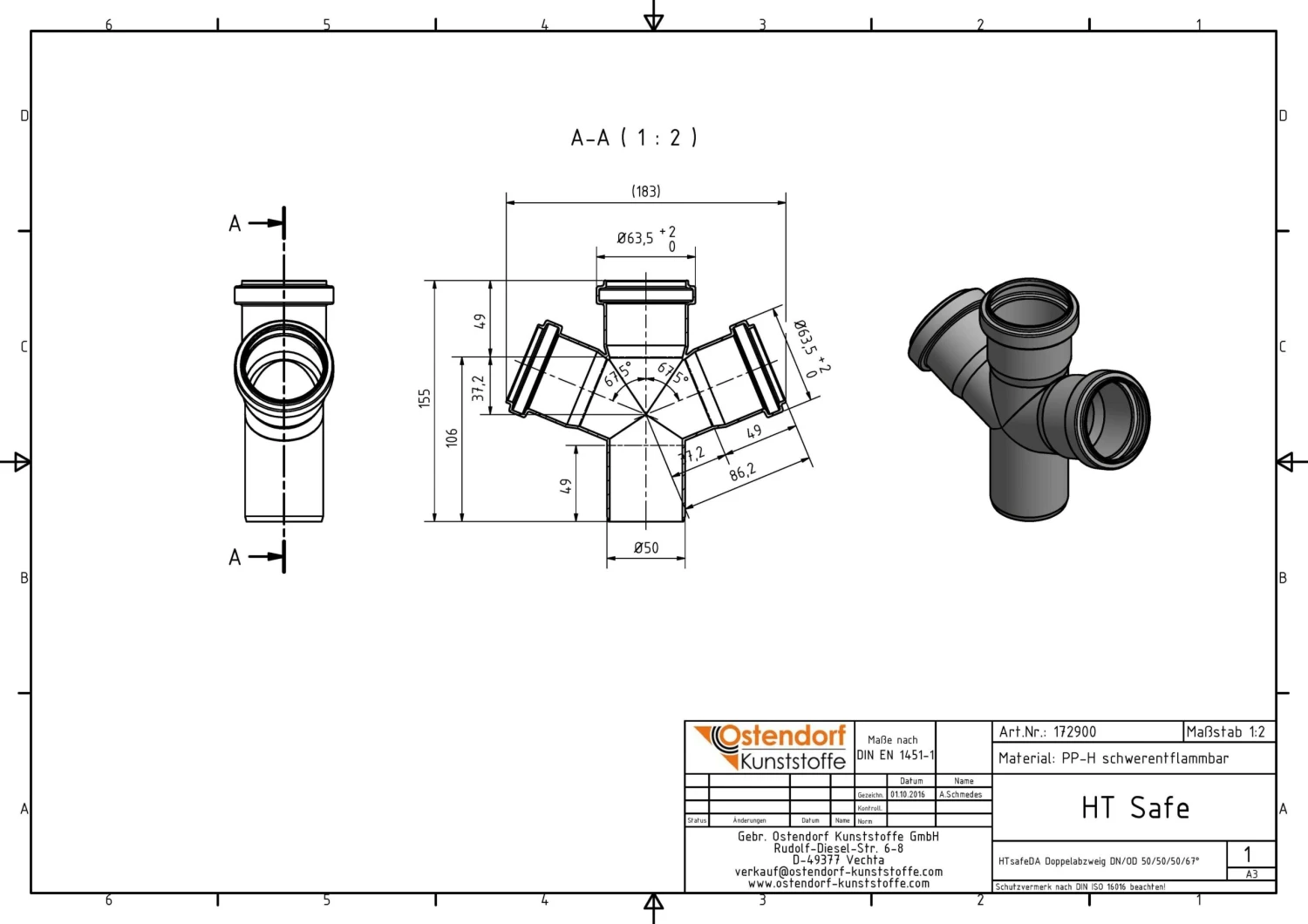 Schreibe die erste Rezension für „Ostendorf HTsafe HTsafe-Doppelabzweig 172900 DN/OD 50x50x50, 67°“ Antwort abbrechen