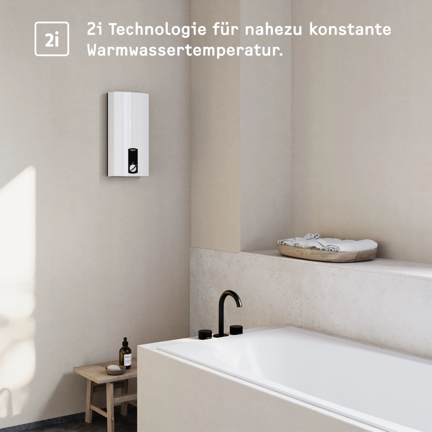 - KOMFORTMERKMALE: Sowohl die Gerätekappe als auch die Bedieneinheit sind drehbar. Die Wunschtemperatur ist auf drei Stufen einstellbar: Waschbecken ca. 35 °C, Badewanne ca. 45 °C, Küchenspüle ca. 55 °C