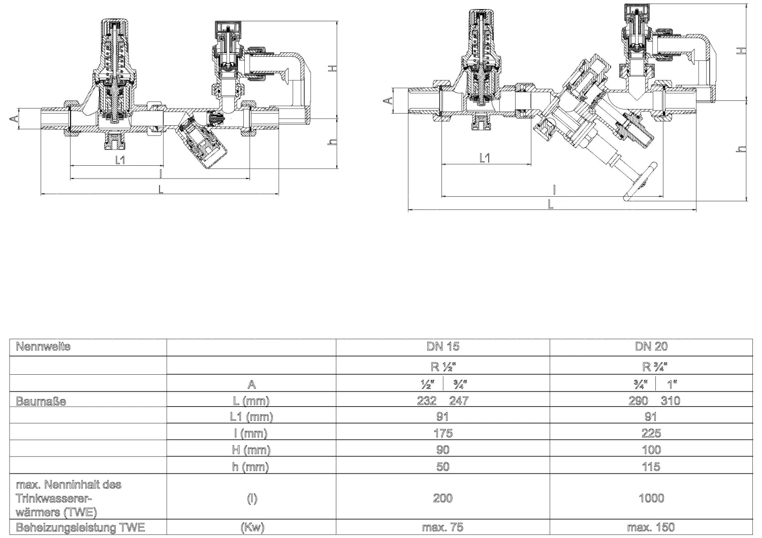 - max. Beheizleistung: DN 15: 75 KW / DN 20: 150 KW