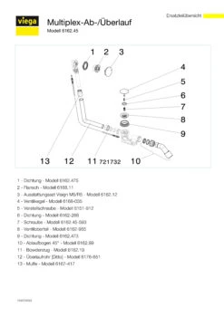 Viega Ab-und Überlaufgarnitur Multiplex 6162.45 in 40/50 Messing verchromt multiplex – Ab- und Überlaufgarnitur, mit Geruchverschluß und 45Gr-Ablaufbogen, güteüberwacht, nach DIN EN 274, für Normalbadewannen und tiefe Duschwannen,