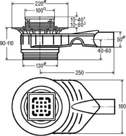 Viega Badablauf Advantix 4936.3 Kunststoff Grau, DN 50, Ablauf Senkrecht, Rahmen Edelstahl