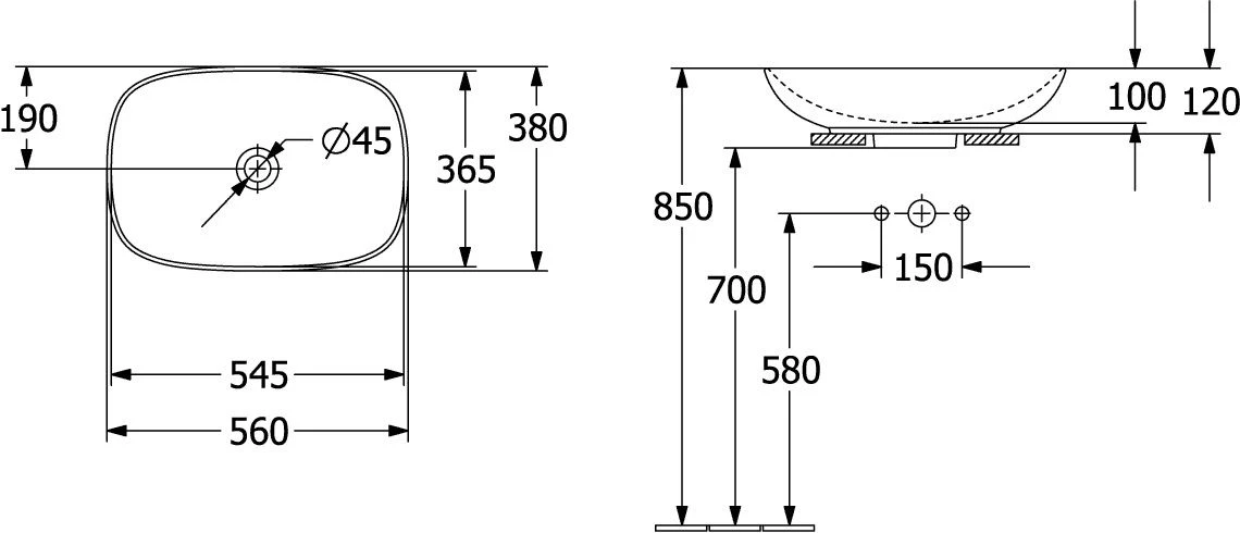 - für Wandauslauf-Armatur oder Armatur mit erhöhtem Standfuß